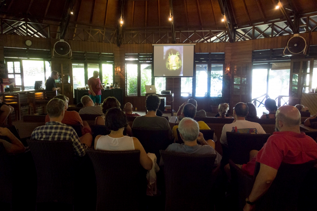 Teaching is typical in the form of illustrated talks, pre-dive chats, and group image review sessions. I am always happy to help one to one, but I do not usually teach underwater (apart from pointing you towards good shots, or modelling in your pictures) as I have seen many times it too often results in confused messages and wasted time all-round.