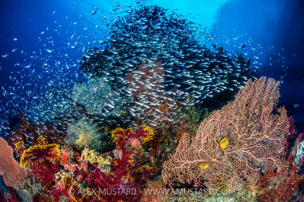 “Misool is a paradise,” says Alex. “Lush coral reefs grow right beneath the rooms, green turtles aggregate right off the beach, reef sharks swim beneath the wooden walkways and huge schools and colourful blooms of soft coral gather just beneath the dock. On one visit we found 18 pygmy seahorses on the house reef. The island also has its own manta cleaning station, flasher wrasse spawning spots and within minutes there are some of the most famous dives in Raja Ampat. And rather than diving them with a liveaboard load of dive buddies, Misool runs small boats and even smaller groups, ensuring you dive some of the world’s best reefs in a very exclusive way.  It is a place to immerse yourself in nature and in your photography. This is also an incredible place to stay, and since the resort usually attracts a lot of non-divers, it is common that people bring non-diving partners on this one, as there are plenty of staff and experiences for them to enjoy while we are out snapping.”