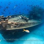 - Creole wrasse (Clepticus parrae) swarm above the bow of the wreck of the USS Kittiwake. Seven Mile Beach, Grand Cayman, Cayman Islands, British West Indies.