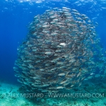 - A huge school of bigeye trevally (bigeye jack: Caranx sexfasciatus) swimming over a coral reef. South Atoll, Tubbataha Atolls, Tubbataha Reefs Natural Park, Palawan, Philippines. Sulu Sea.