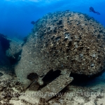 - A diver (Steen Nissen) swims over the stern of the Chrisoula K wreck (also known as the tile wreck). Abu Nuhas, Egypt. Strait of Gubal, Gulf of Suez, Red Sea.